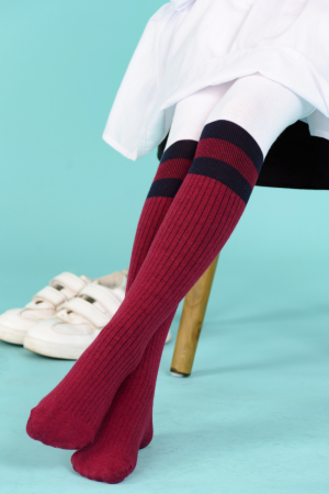 Оригинальные колготки для школьников. Однотонный гладкий верх, низ имитирует гольфы контрастного цвета в узкую полоску. Спокойный дизайн и расцветка колготок отлично подойдут для стильного школьного образа.