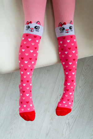 Колготки с вязаным рисунком в виде сердечек и кошачьих мордочек для детей