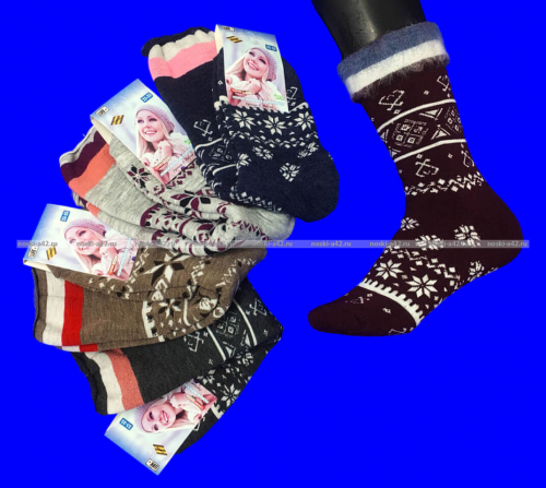 5 ПАР - Термоноски женские высокие (гольфы) внутри махра с начесом из шерсти мериноса ЖЗ-21 оптом.