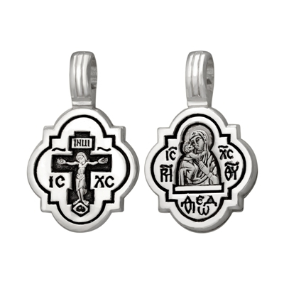 Образ (Распятие Христово, БМ Владимирская) из серебра частичное чернение литье (арт. 2-071-3)