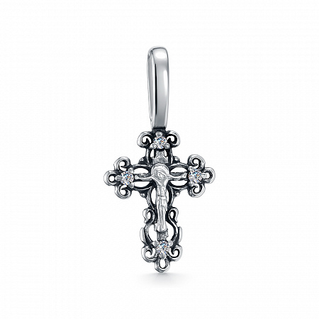 Крест из серебра литье с фианитом частичное чернение (арт. 63-2473)