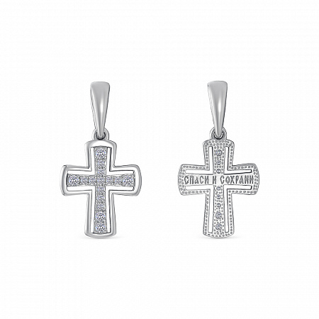 Крест с фианитом родированный серебро 925* (арт. 13-1493)