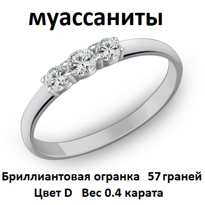 Вставка: Муассанит Круг 57 3.0 D/VVS1 бц. 2шт, Муассанит Круг 57 3.5 D/VVS1 бц. 1шт