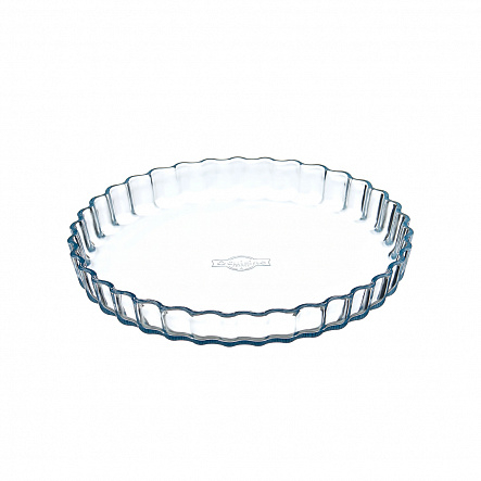 Круглая форма для выпечки размером 27см. Высота формы: 3см. Изготовлена из закаленного боросиликатного стекла с рифлеными краями. Предназначена для запекания в СВЧ-печи и духовке. Выдерживает температуру до +300С.