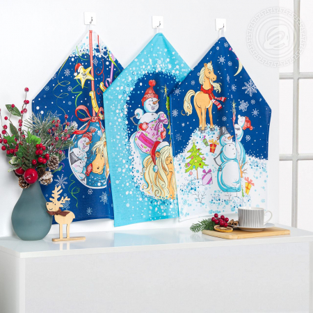 Только посмотрите на новогодние полотенца «Каникулы»! Они символизируют праздник и дарят море положительных эмоций. Красочные оттенки, обаятельные герои – композиция со снеговиками и лошадками напоминает старые добрые открытки. В дизайне присутствуют милые сценки из жизни героев: снеговики и лошадки готовятся к встрече Нового года 2026, упаковывают подарки, наряжают ёлку. От композиции на рогожке веет теплом и добром. Уютный подарок к волшебному торжеству!