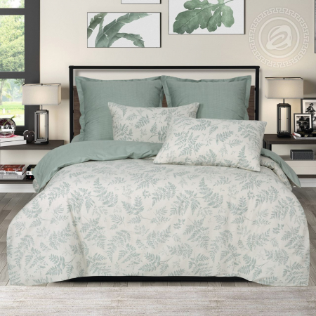 «Даниэла» — это женственность, гармония, вдохновение. Сатин из коллекции престиж в приглушенном зеленом цвете олицетворяет спокойствие и комфорт, а утонченные узоры в виде листьев напоминают о весне. Комплект выглядит элегантно, свежо, уютно. Он станет чудесным дополнением спальни и подарит счастливые грезы.
