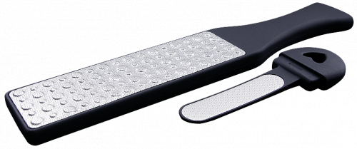 Лазерная терка Quadro Sun+ с вкладышем состоит из трёх различных поверхностей. Первая ступень с деформацией рельефа предназначена для удаления грубой кожи и кожи вокруг пятки. Обратная сторона тёрки ровная и она зашлифовывает кожу пятки, делая её более гладкой, без ощутимых заусенцев. Вкладыш в ручке предназначен для удаления кожи и кутикулы на пальцах рук и ног, и околоногтевых валиков. Можно использовать по распаренной или сухой коже.Лазерная терка Quadro Sun изготовлена из высококачественной стали, которая не поддается коррозии. Вы можете использовать терку в ванной и не бояться ее испортить. Внутри терка полая, так что она не тонет в воде.