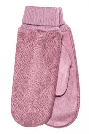 Варежки женские с отворотом (отворот разгибается), внутри подклад велсофт. Комбинированные: ладонь - иск.замша, сверху - вязаный узор.