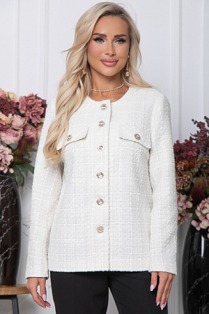 Шикарный жакет в стиле шанель из качественного костюмного твида(ткань производство Турция) с центральной застежкой на пуговицы свободного силуэта.По переду декоративные клапаны.