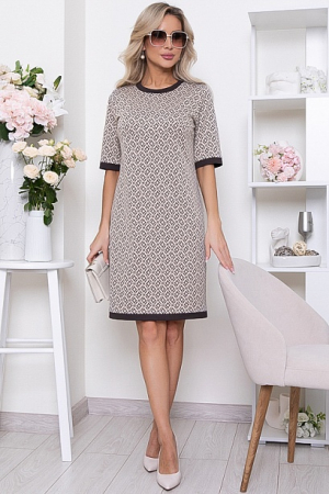 Платье из жаккардового трикотажного полотна свободного силуэта с контрастной отделкой.