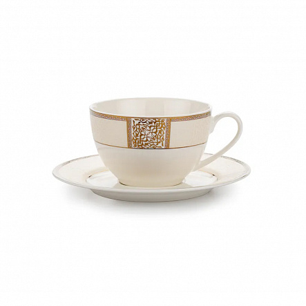 Чайная пара из серии Dynasty бренда FIORETTA – это идеальное решение для любителей чая и кофе. Набор состоит из кружки емкостью 220 мл и блюдца 15 см, придавая ему элегантный эстетичный вид. Прекрасно подходит для стильных и винтажных интерьеров, что делает его оригинальным подарком на любой случай.