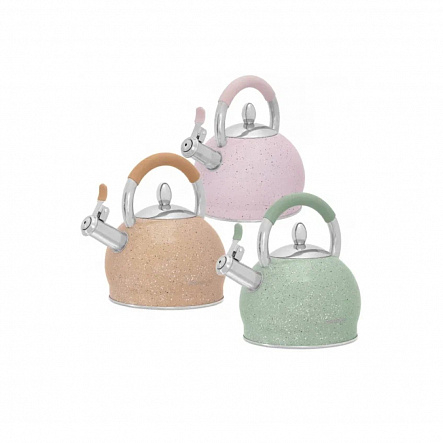 Чайник из нержавеющей стали объемом 3 л подходит для электрических, индукционных и газовых плит. Свисток на носике изделия подскажет, когда вода в чайнике закипит. Чайник со свистком прослужит долго за счет прочной стали, которая устойчива к механическим повреждениям. Микс цветов.