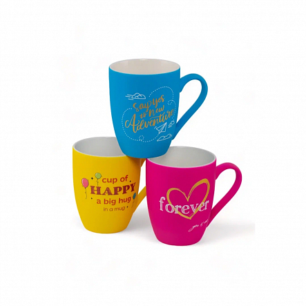 Набор кружек DOMENIK OH!SOFT состоит из трёх стильных и удобных предметов, предназначенных для ежедневного использования. Каждая кружка имеет объём 340 мл и идеально подходит для утреннего кофе или чая. Кружки DOMENIK OH!SOFT станут прекрасным дополнением к вашему интерьеру и добавят радости и настроения вашей кухне. Они станут отличным подарком для ваших друзей и близких. Нельзя мыть в ПММ.