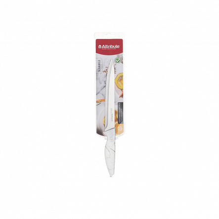Нож для нарезки овощей MARBLE отлично подойдет для ежедневного использования. Нож предназначен для нарезки всех видов овощей и фруктов, он идеально шинкует, нарезает и измельчает продукты. Лезвие выполнено из высококачественной нержавеющей стали. Благодаря уникальной формуле стали и качеству ее обработки, лезвие имеет высокий показатель твердости, что позволяет ножу долго сохранять острую заточку, а также повторно его затачивать. Эргономичная ручка ножа изготовлена из высококачественного пластика, а рисунок ручки имитирует текстуру мрамора и его вид.