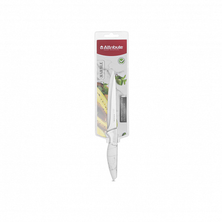 Нож для нарезки овощей MARBLE отлично подойдет для ежедневного использования. Нож предназначен для нарезки всех видов овощей и фруктов, он идеально шинкует, нарезает и измельчает продукты. Лезвие выполнено из высококачественной нержавеющей стали. Благодаря уникальной формуле стали и качеству ее обработки, лезвие имеет высокий показатель твердости, что позволяет ножу долго сохранять острую заточку, а также повторно его затачивать. Эргономичная ручка ножа изготовлена из высококачественного пластика, а рисунок ручки имитирует текстуру мрамора и его вид.
