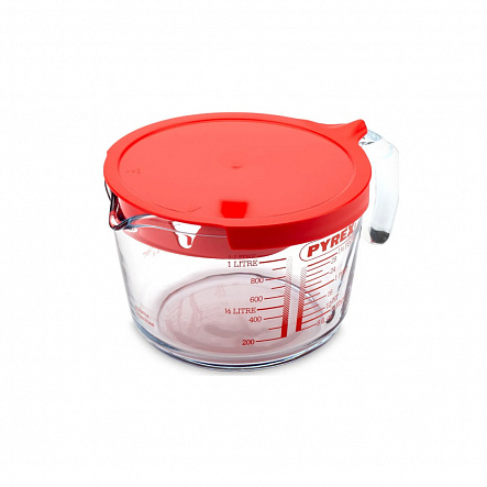 Мерный кувшин Pyrex поможет вам точно следовать рецепту. На него нанесены две измерительные шкалы: в привычных литрах и пинтах, так что если вы захотите приготовить, например, блюдо по традиционному английскому рецепту с иностранного сайта, не придётся возиться с конвертацией. Объём ёмкости – 1 литр. Она снабжена носиком и пластиковой крышкой, в которой есть специальное отверстие для удобства слива. Изделие изготовлено из закалённого боросиликатного стекла, благодаря чему выдерживает температуру в диапазоне от -40 до 300 градусов. Вы сможете, например, подогреть молоко в СВЧ прямо в кувшине. Мыть его разрешается вручную или в посудомоечной машине.