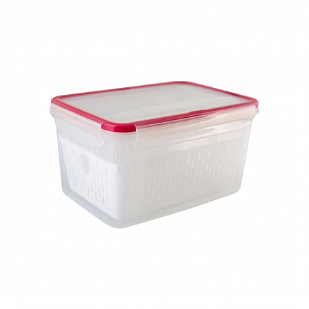 Контейнеры "Экстра Лок" дольше сохраняют свежесть и полезные свойства продуктов за счет герметичности: крышка и резиновая вставка-уплотнитель по ее периметру отливаются одновременно, что обеспечивает неразъемное соединение, и четыре защелки обеспечивают плотное прилегание крышки к корпусу. Сетка обеспечивает отвод лишней влаги и продлевает хранение овощей, фруктов, зелени, ягод и мяса. На корпусе контейнера указаны литраж, буквенное обозначение размерного ряда и мерная шкала. Микс цветов.