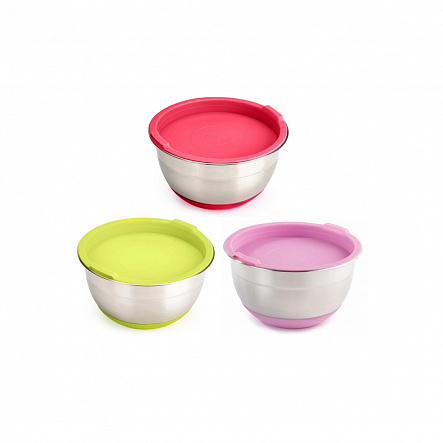 Миска стальная с крышкой MIX - незаменимая вещь для любой хозяйки. Нержавеющая сталь надежна в использовании, за ней просто ухаживать, можно мыть в посудомоечной машине. Силиконовое дно не позволяет миске скользить по поверхности, поэтому она идеально подходит для смешивания продуктов вручную или миксером. В миске можно не только готовить, но и хранить продукты благодаря плотно прилегающей силиконовой крышке. Функциональный объем 4,2 л подходит для приготовления большого объема продуктов. Микс цветов.