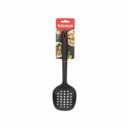Шумовка Attrubite Estilo изготовлена из высококачественного нейлона, который не выделяет вредные вещества при контакте с горячими продуктами и абсолютно безопасен для антипригарных покрытий. Функциональная форма с квадратными углами позволяет легко подчерпнуть содержимое. Особая конструкция отверстий помогает быстро и эффективно сливать лишнюю жидкость.