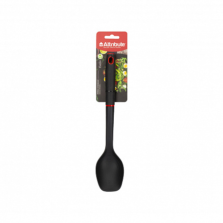 Кулинарная ложка из высококачественного нейлона идеально подходит для работы со сковородой или смешивания салата. Кроме того, она не оставляет царапин, безопасно использовать на антипригарном покрытии. Ложка для приготовления пищи - незаменимый атрибут для кухни. Длина устройства 34 см. Кулинарная ложка черная из термостойкого пластика позволяет легко перемешивать продукты, засыпать необходимые ингредиенты в кастрюлю, вынимать готовые изделия из сковороды и т. д. Ложка кухонная пластмассовая используется для приготовления различных блюд, десертов.