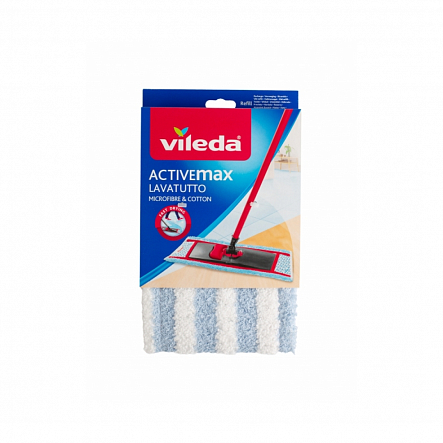 Насадка Активмакс от немецкого бренда Виледа состоит из 2 видов волокон: хлопок и микрофибра. Она тщательно убирает грязь и влагу, не оставляя разводов, при этом пол быстро сохнет. Насадка отжимается вручную. Рекомендуется машинная или ручная стирка насадки по мере загрязнения, можно стирать при низких температурах, не добавлять кондиционер.