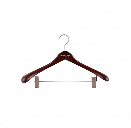Вешалка "PRESTIGE" выполнена из натурального, дерева, защищенного бесцветным лаком от проникновения влаги. Поворачивающаяся ручка из качественной стали, позволяет удобно размещать вещи в шкафу. Благодаря толстым плечикам и оптимальному размеру вешалка будет поддерживать ваши пиджаки, пальто, куртки и шубы в идеальном состоянии. Металлические клипсы подойдут для поддержания порядка брюк и юбок. Классический дизайн и насыщенный коричневый цвет хорошо впишется в любого гардероб и шкаф.
