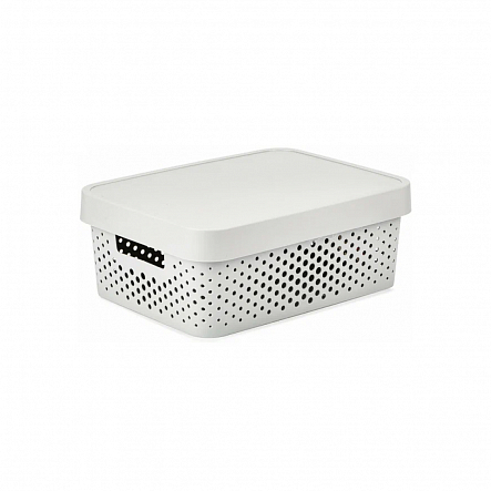 Коробка с крышкой INFINITY европейского бренда CURVER создана для организации и хранения вещей в Вашем доме. Коробка изготовлена из высококачественного пластика, который не выделяет вредных веществ, не тускнеет со временем и не впитывает запахи. Коробка подходит для хранения небольших вещей, полезных мелочей, организации пространства в гардеробной или шкафу. Особая перфорированная текстура коробки предотвращает появление неприятного запаха при долгом хранении. Коробка функциональна, она оснащена ручками по бокам для удобной транспортировки. Яркий цвет станет прекрасным украшением помещения, а стильный дизайн органично дополнит интерьер.