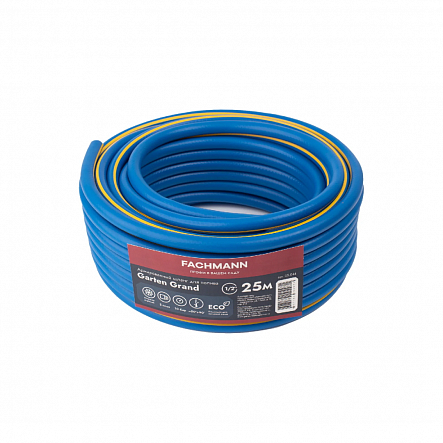Шланг для полива из термоэластопласта серии Grand от российского производителя Fachmann Garten. Шланг имеет 3х слойное диагональное армирование, усиленные стенки толщиной 2 мм, благодаря чему обеспечивается рабочее давление в 4 бар, а также давление на разрыв до 12 бар. Покрытие Soft Touch мягкое и приятное на ощупь. Возможна эксплуатация шланга в широком диапазоне температур от -50 до +90 градусов. Может стационарно размещаться на весь дачный сезон. Шланг садовый выполнен из экологичного материала, не содержит вредные вещества и тяжелые металлы (кадмий, барий, свинец), подходит для питьевой воды и использования в пищевой промышленности. Шланг эластичный, не перегибается и не перекручивается во время использования. Устойчив к УФ лучам. Срок службы до 15 лет. Вес бухты 3 кг.