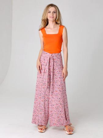 Летние брюки палаццо из 100% вискозы подходят для девушек и женщин разных возрастных групп. Такие брюк -трансформеры с карманами и разрезами по бокам выручат Вас жарким летним днем в городе и станут любимым предметом гардероба на отдыхе. Фантазируйте с аксессуарами, создавайте разные образы (юбка-брюки, пляжный комбинезон, сарафан) и Вы не останетесь незамеченной в этой модной модели брюк!