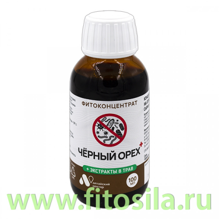 Чёрный орех - фитоконцентрат на основе экстракта околоплодников чёрного ореха и ещё 8 лекарственных растений противопаразитарного действия. Содержит вещества, которые активно подавляют развитие и размножение паразитов, способствуют очищению организма от токсичных продуктов их жизнедеятельности, создают условия, неблагоприятные для развития патогенной микрофлоры.