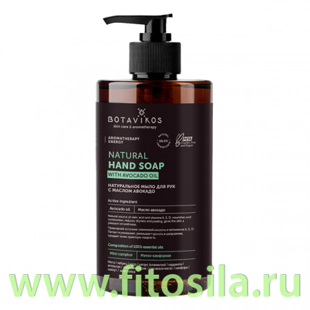 Жидкое мыло для рук оказывает антибактериальное и ароматерапевтическое действие за счет содержания мятно-камфорной композиции 100% эфирных масел.