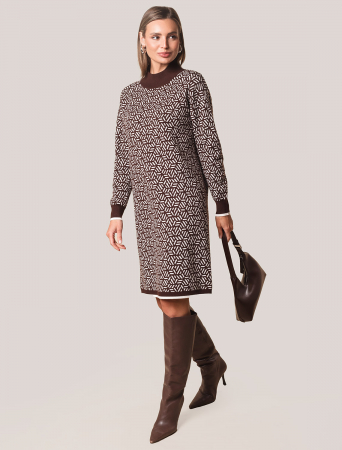 Платье жаккардовой вязки выполнено из мягкой пряжи на основе вискозы с добавлением кашемира. Модель свободного силуэта с высоким воротом и длинным рукавом. Нежная пряжа очень комфортно ощущается на теле, сохраняя оптимальное тепло при этом не перегревая. Совет стилиста: жаккардовое платье отличная инвестиция в базовый гардероб, которая поможет создать дорогие образы. Носите с высокими сапогами удлиняя силуэт или плотными колготками.