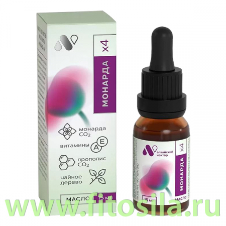 Масло монарды — натуральный продукт, который получают из растения монарда дудчатая (бергамот лимонный). Обладает приятным цитрусовым ароматом с нотками пряностей. Помимо масла монарды в составе Комплекса х4 содержится СО2, экстракт монарды, получаемый с помощью технологии сверхкритической экстракции углекислым газом (СО2). Этот метод позволяет извлечь из растения максимальное количество полезных веществ и сохранить их в неизменном виде.