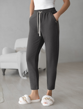 Брюки выполнены из тонкого хлопкового футера. Эластичный материал хорошо пропускает воздух, позволяя телу дышать, и легко тянется, не ограничивая движения. Пояс на резинке дополнен внутренним шнуром, для комфортной регулировки изделия. Брюки сочетаются в костюме с джемпером D49.054 и D49.055