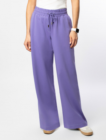 Брюки выполнены из футера двухнитки с эластаном. Модель прямого кроя дополнена боковыми карманами и одним задним карманом. Пояс выполнен из эластичного трикотажа в рубчик. В пояс вставлен плоский хлопковый шнур в тон изделия с серебристыми наконечниками. Изделие дополнено металлическим логотипом бренда. Сочетается в костюме с жакетом D49.078, джемпером D49.079, D49.080 и футболкой D49.081