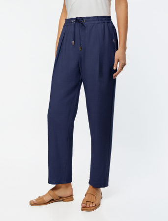 Брюки выполнены из плотного лиоцелла. Модель дополнена карманами и поясом с эластичной резинкой и регулируемым шнурком с золотистой фурнитурой. Ткань изделия отлично держит форму, плавно драпируется и не просвечивает. В теплое время года приятно охлаждает кожу. Добавление синтетических волокон в составе изделия, предотвращает сминаемостьи поддерживает формоустойчивость. Брюки сочетаются в костюме с топом D23.063 и блузкой D29.266, D29.267 и жилетом D27.002