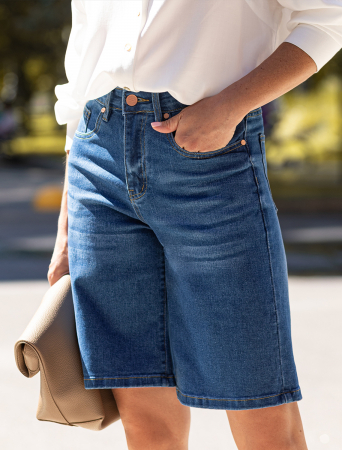 Шорты выполнены из эластичного денима. Комфортная длина подходит для любой фигуры. Мягкая прочная ткань хорошо пропускает воздух, а изделия из нее не растягиваются и надолго сохраняют заданную форму. Лучшая альтернатива джинсам в жаркое время года.
