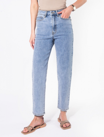 Джинсы mom-fit из эластичного денима. Зауженный крой подчеркивает фигуру, а высокая посадка акцентирует талию. Подходят для любого типа фигуры. Модель дополнена высококачественной фурнитурой. Джинсы - идеальный и беспроигрышный вариант для образов в духе streetstyle.