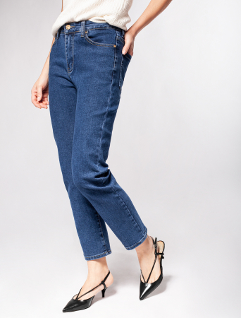 Джинсы прямого силуэта сшиты из эластичного денима средней плотности. Универсальные и практичные для любого времени года с кроссовкамии, туфлями и сапогами. На верх с классической блузкой, водолазкой и свитером крупной вязки.