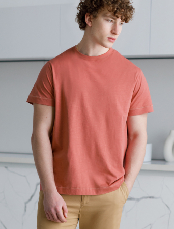 Футболка выполнена из фактурного полотна из 100% хлопка. Базовая однотонная модель, без труда впишется в любой гардероб. Ткань имеет характерный рисунок черточки за счет сочетания разных волокон хлопка 140-150 г. Хорошо держит форму и поддерживает комфортный микроклимат в течении дня. На рукаве нашивка из эко-кожи с логотипом бренда.