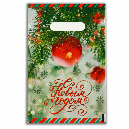 Пакет полиэтиленовый с вырубной ручкой "Ёлка с украшениями", 20х30 см.
