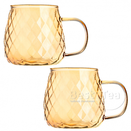 Кружка Кристалл стеклянная, рифленая, цвет карамель, желтая ручка, 350 мл, 2 шт (арт. S-731/2pcs)