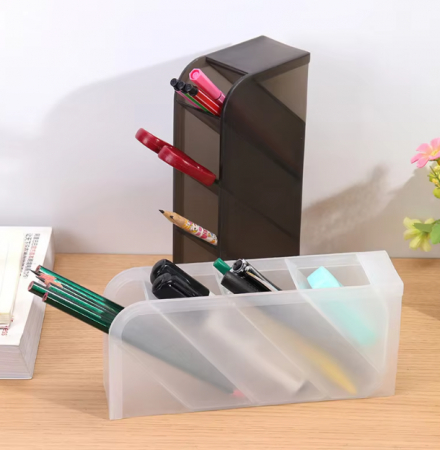 Органайзер может вместить до 110 предметов ручек, фломастеров, карандашей, кистей и косметики. Одна из уникальных особенностей этого органайзера - возможность расположения его на столе в двух вариантах: горизонтально и вертикально. Это позволяло адаптировать органайзер к конкретному стилю работы или вкусовому предпочтению пользователя.