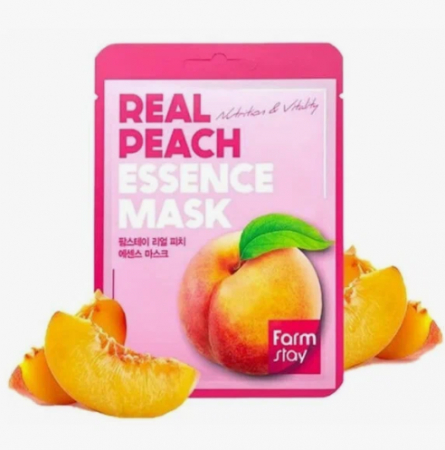 Тканевая маска FarmStay Real Peach Essence Mask с экстрактом персика поможет сделать кожу мягкой и бархатистой, наполнит её полезными витаминами и микроэлементами. Средство имеет легкую текстуру, не забивает поры и не оставляет липкого слоя. Увлажняющий комплекс помогает восстановить гидробаланс дермы, предотвращает потерю влаги на протяжении долг времени, снимает воспаления и убирает шелушения. Экстракт персика обладает высокими питательными свойствами, смягчает кожный покров, устраняет грубые участки, витаминизирует эпидермис и наполняет его жизненной силой и энергией. Так же экстракт персика придаёт лицо более ровный и сияющий тон, способствует мягкому отшелушиванию ороговевших клеток. После использования маски вы заметите, что ваша кожа стала более мягкой и сияющей, исчез жирный блеск и чувство стянутости, а покраснения и воспаления стали менее заметными.