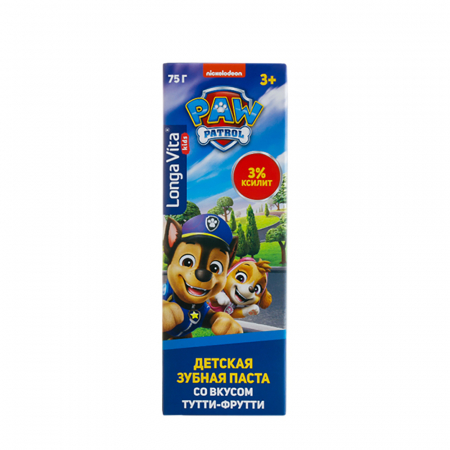 Детская профилактическая зубная паста Longa Vita® для детей от 3-х лет PAW Patrol со вкусом Тутти-Фрутти предназначена для ежедневного ухода за зубами и деснами ребенка. Ксилит защищает зубную эмаль от кариеса. Витамины A и E обеспечивают бережный уход за полостью рта. В состав пасты не входят парабены и триклозан. Текстура гелевая.