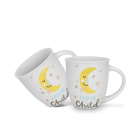 Каждая кружка объёмом 380 мл выполнена в уникальном дизайне с изображением спящего полумесяца и надписью MOON CHILD, позволяет насладиться любимым напитком в полной мере.
