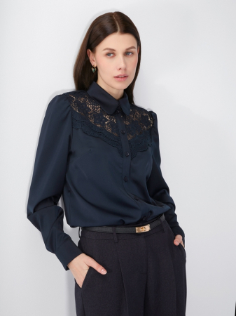 Блузка с кружевом на полочке OD-892-2 т.синий (арт. OD-892-2)