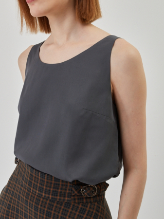 Топ из блузочной ткани с круглым вырезом OD-820-3 серый (арт. OD-820-3)