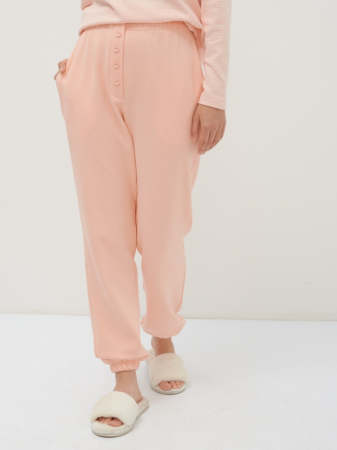 Женские брюки- джоггеры из однотонного трикотажа. Практичный и свободный крой, зауженные к низу на резинке и резинкой по талии, подарит невероятный комфорт и уют, что так не заменимо для повседневного гардероба. Карманы в боковых швах. По полочке декоративный гульфик на пуговицах в цвет ткани. Рост модели 175 см. Изделие на модели 42р-ра. Длина изделия 106,6 см. Машинная стирка при 30 градусах