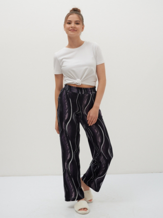 Прямые, свободные домашние брюки из мягкого трикотажного полотна с высокой посадкой и карманами с боковым срезом. Брючки предназначены для сна и домашнего отдыха. На модели размер изделия 42. Рост модели 175 см. Машинная деликатная стирка.